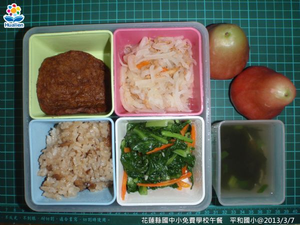 | 小叮嚀: 所有關心花蓮縣國中小學生免費午餐福利的家長及各界朋友們,請按上方選單中的 各校午餐照片![]() 就可以查詢到每日實際的供餐菜色照片喔!