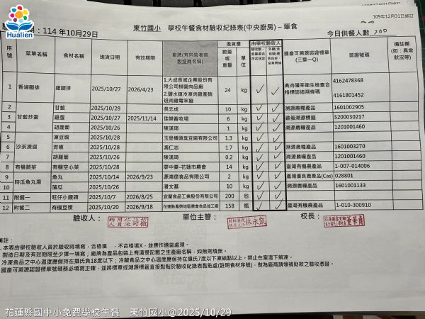 現在為您呈現的是 2025/10/29 的午餐照片:
