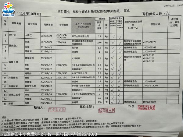 | 小叮嚀: 所有關心花蓮縣國中小學生免費午餐福利的家長及各界朋友們,請按上方選單中的 各校午餐照片![]() 就可以查詢到每日實際的供餐菜色照片喔!