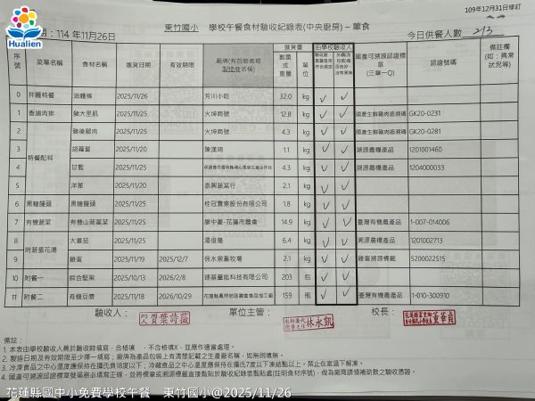 | 小叮嚀: 所有關心花蓮縣國中小學生免費午餐福利的家長及各界朋友們,請按上方選單中的 各校午餐照片![]() 就可以查詢到每日實際的供餐菜色照片喔!