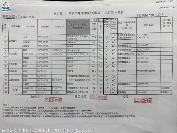 | 小叮嚀: 所有關心花蓮縣國中小學生免費午餐福利的家長及各界朋友們,請按上方選單中的 各校午餐照片![]() 就可以查詢到每日實際的供餐菜色照片喔!