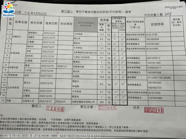 | 小叮嚀: 所有關心花蓮縣國中小學生免費午餐福利的家長及各界朋友們,請按上方選單中的 各校午餐照片![]() 就可以查詢到每日實際的供餐菜色照片喔!