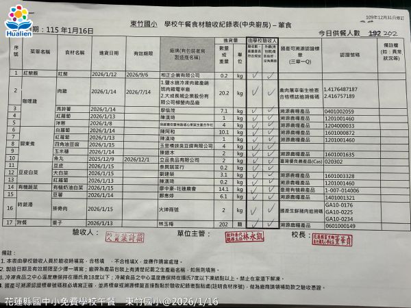 | 小叮嚀: 所有關心花蓮縣國中小學生免費午餐福利的家長及各界朋友們,請按上方選單中的 各校午餐照片![]() 就可以查詢到每日實際的供餐菜色照片喔!